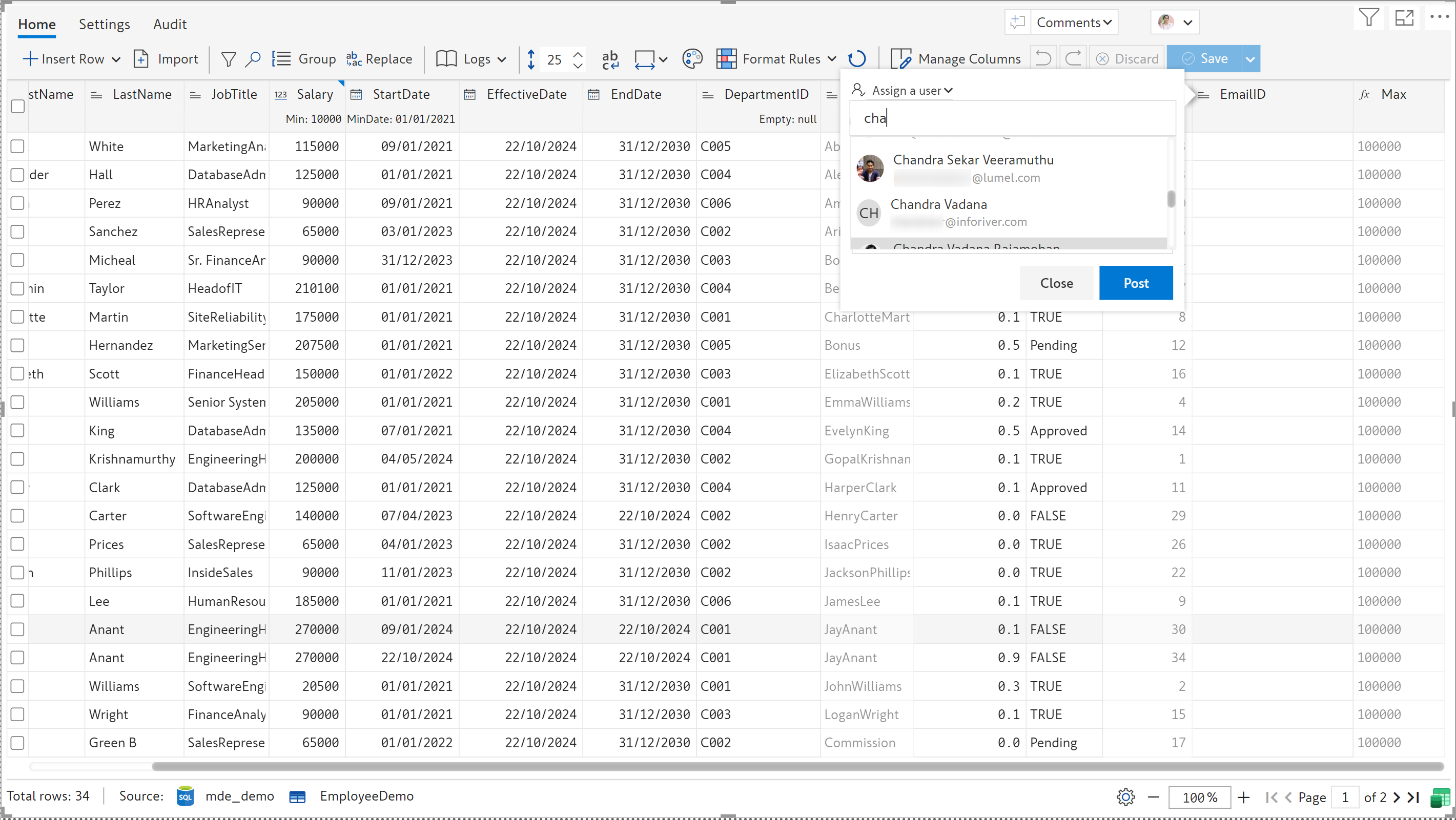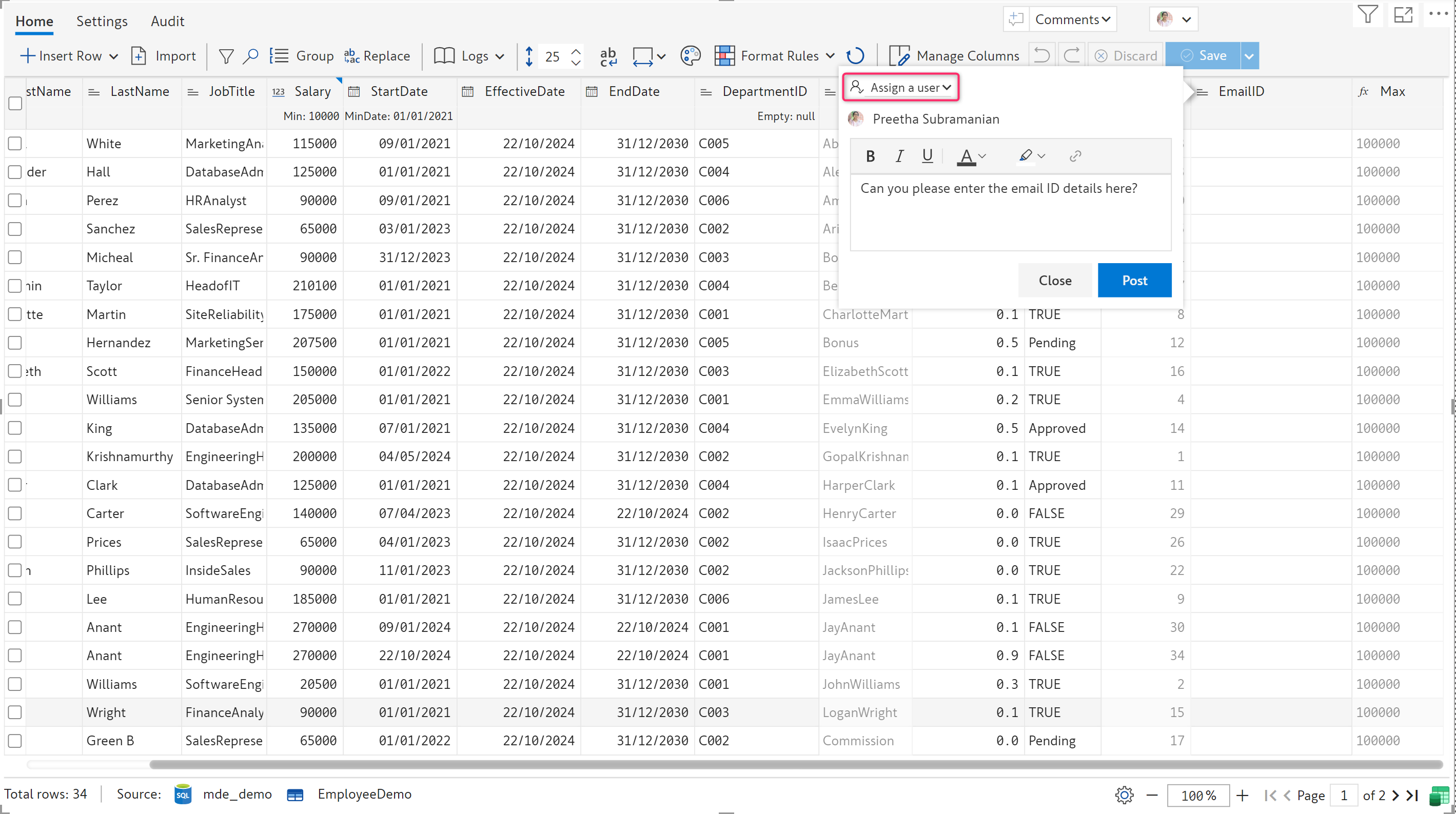 4. Comments added in the comments column can also be assigned as tasks. Select a comment and assign it to a user.
