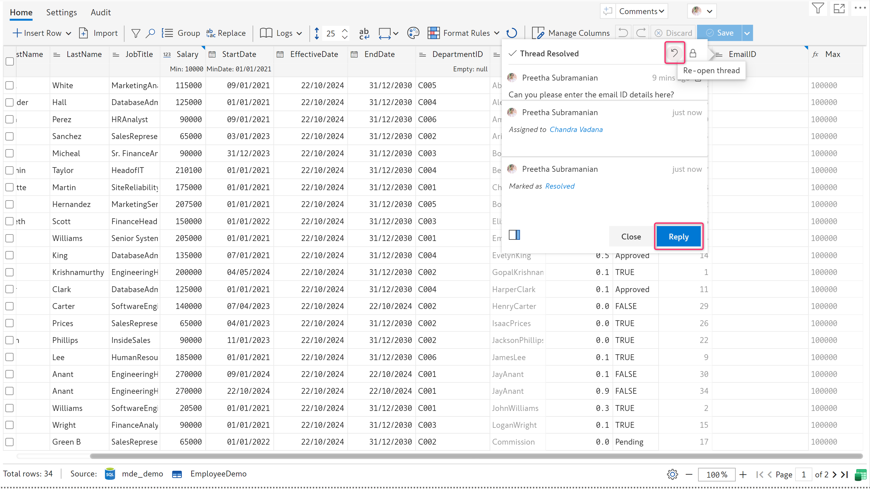 In this section, we’ll explore how to assign tasks to stakeholders and track their progress using the comments thread. Monitoring task status with terms like ‘Resolved', ‘Open', etc. ensures clear communication and efficient collaboration, especially when managing inputs from multiple stakeholders. You can achieve this with EDITable, which can help your team with accountability and improve workflow efficiency.