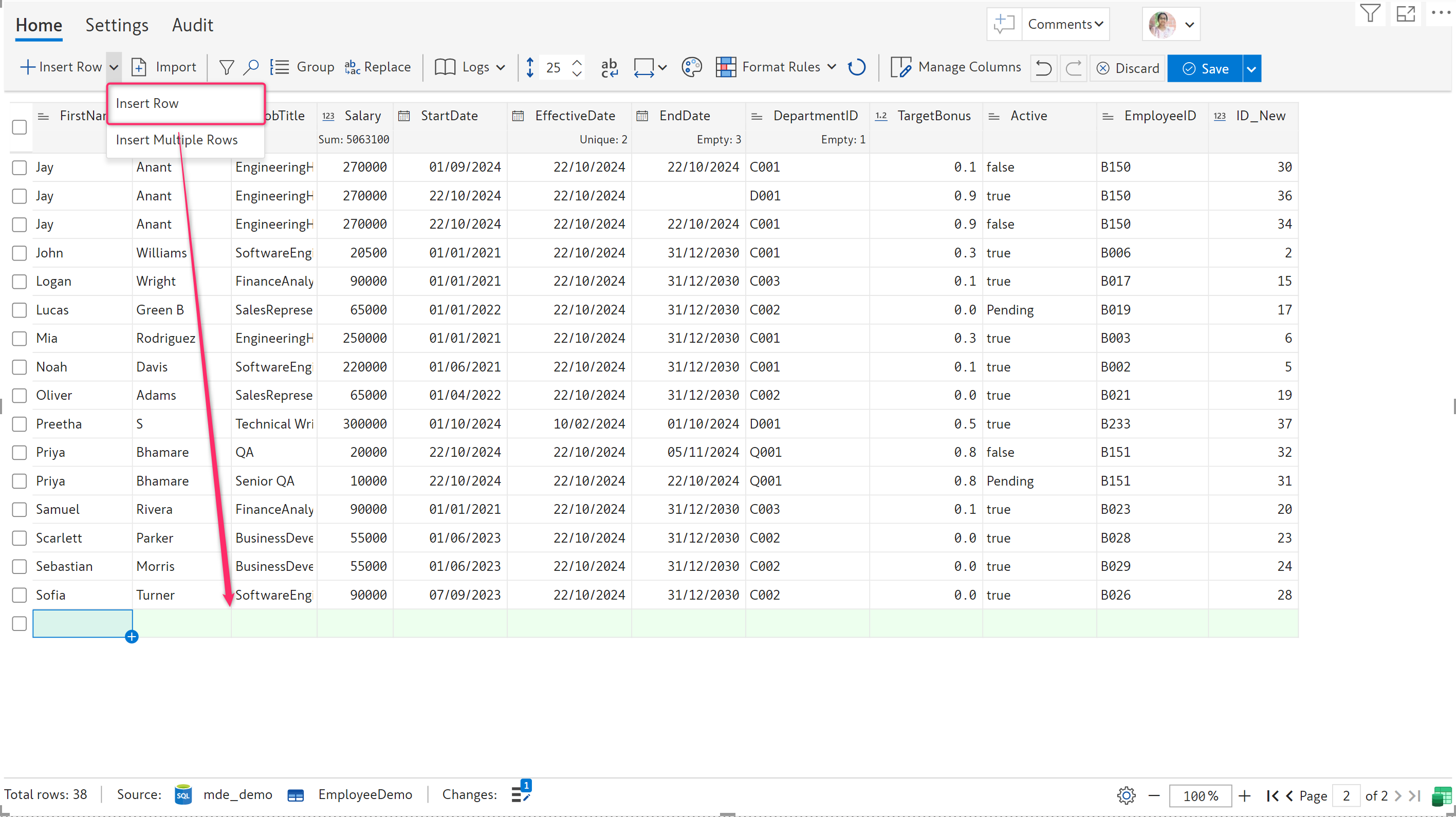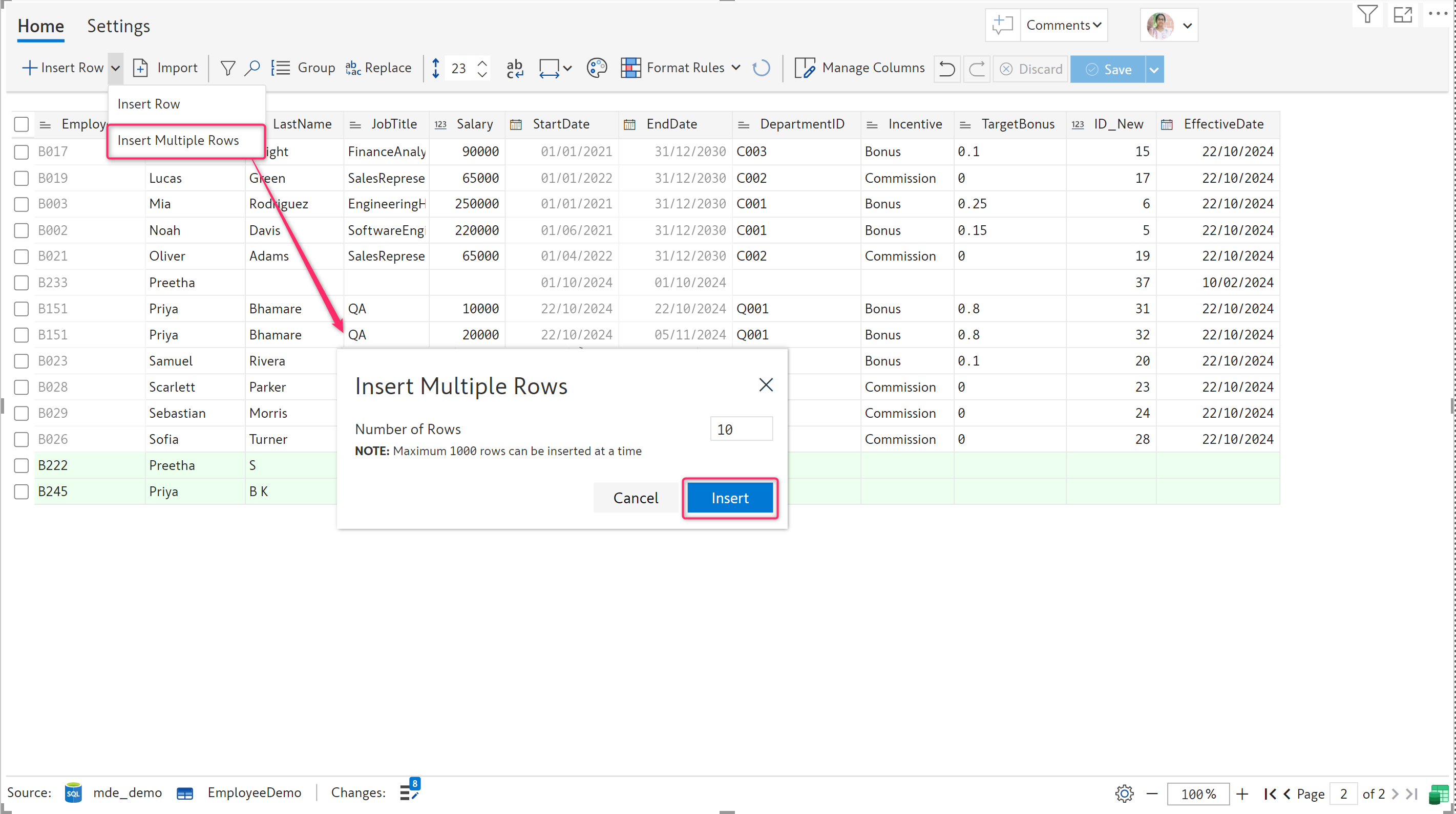 <figure><img src="https://608526116-files.gitbook.io/~/files/v0/b/gitbook-x-prod.appspot.com/o/spaces%2FdpYgiTFFEktmDlcxUGTv%2Fuploads%2FnfatCbBPpYO2HUwf4Aw4%2Fimage.png?alt=media&#x26;token=2178e915-8f24-4113-a6a9-95dbcc54c91d" alt=""><figcaption><p>Insert multiple rows</p></figcaption></figure>